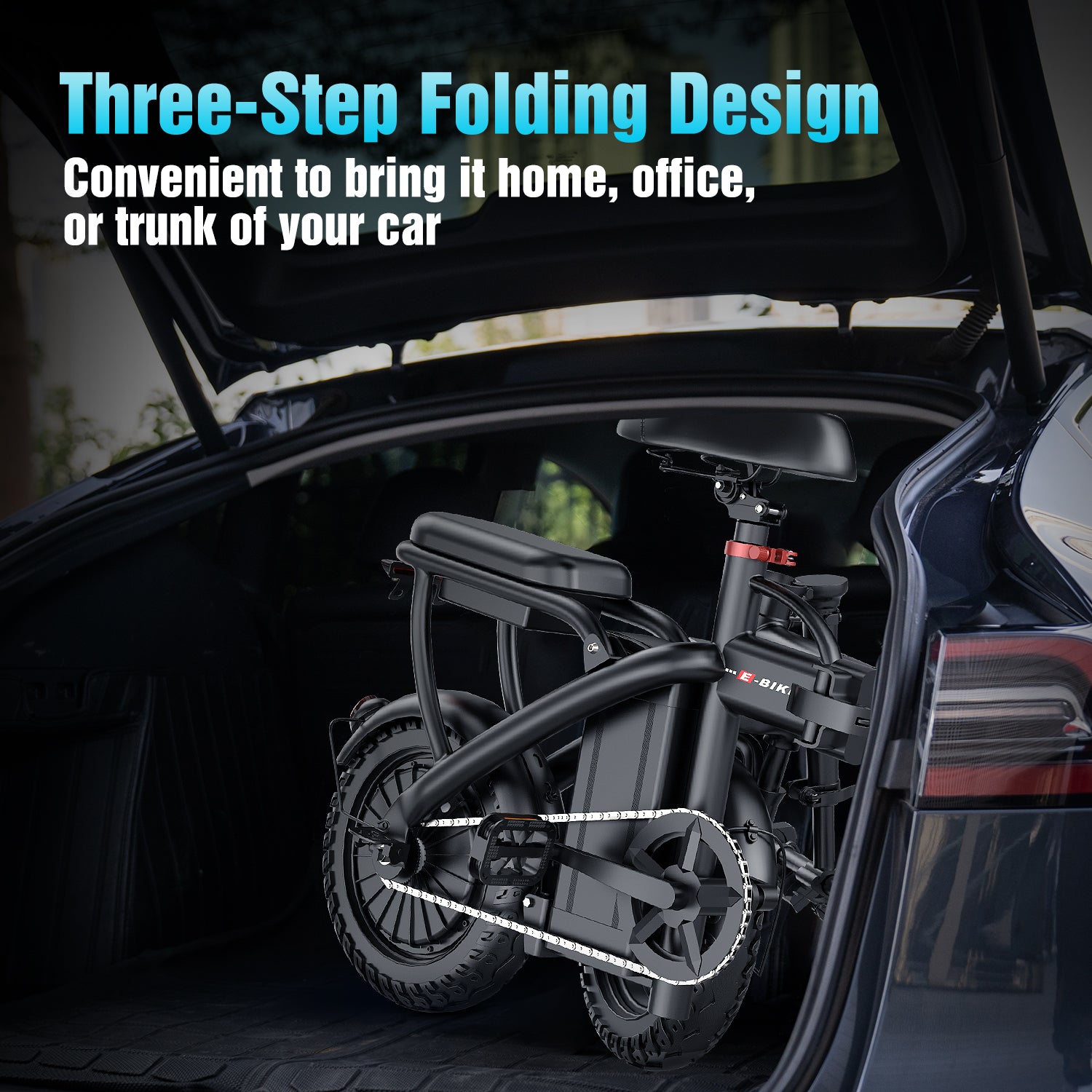 ASKGO 14" Folding Electric Bike for Adults Teens, 1200W Peak Motor 48V/10.5AH Battery, Commuter City Ebike, Electric Bicycle with Two Seats UL2849