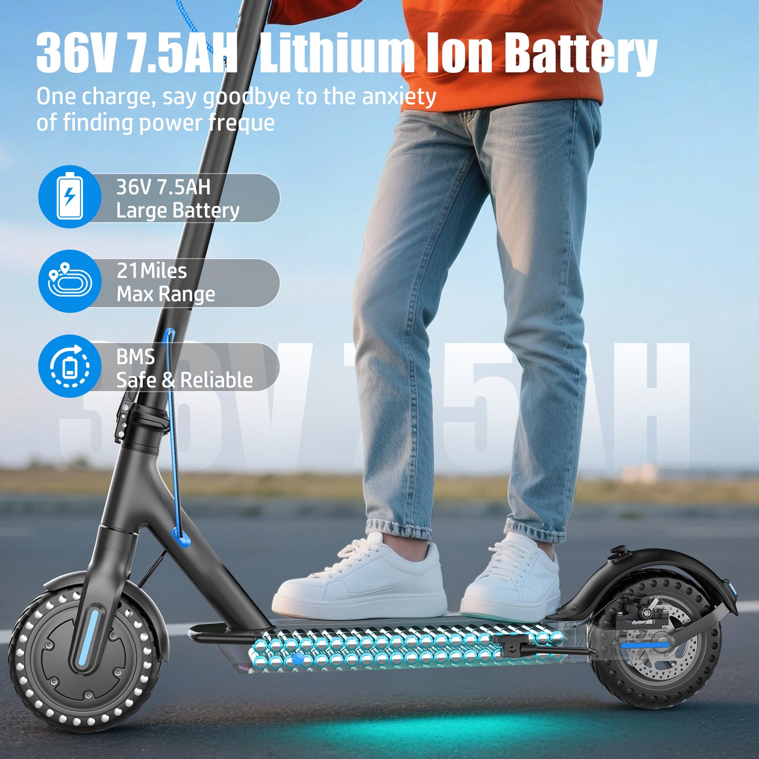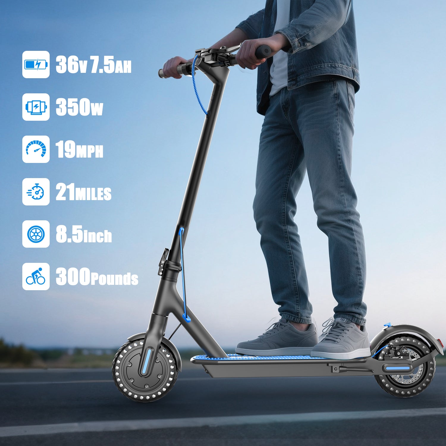 - Excellent Performance On The Road - S5 e-scooter is equipped with a 350W powerful motor and high capacity battery, with a range of up to 21 miles and a maximum speed of 19 mph. very suitable for daily commuting or short trips. maximum load 265lbs.