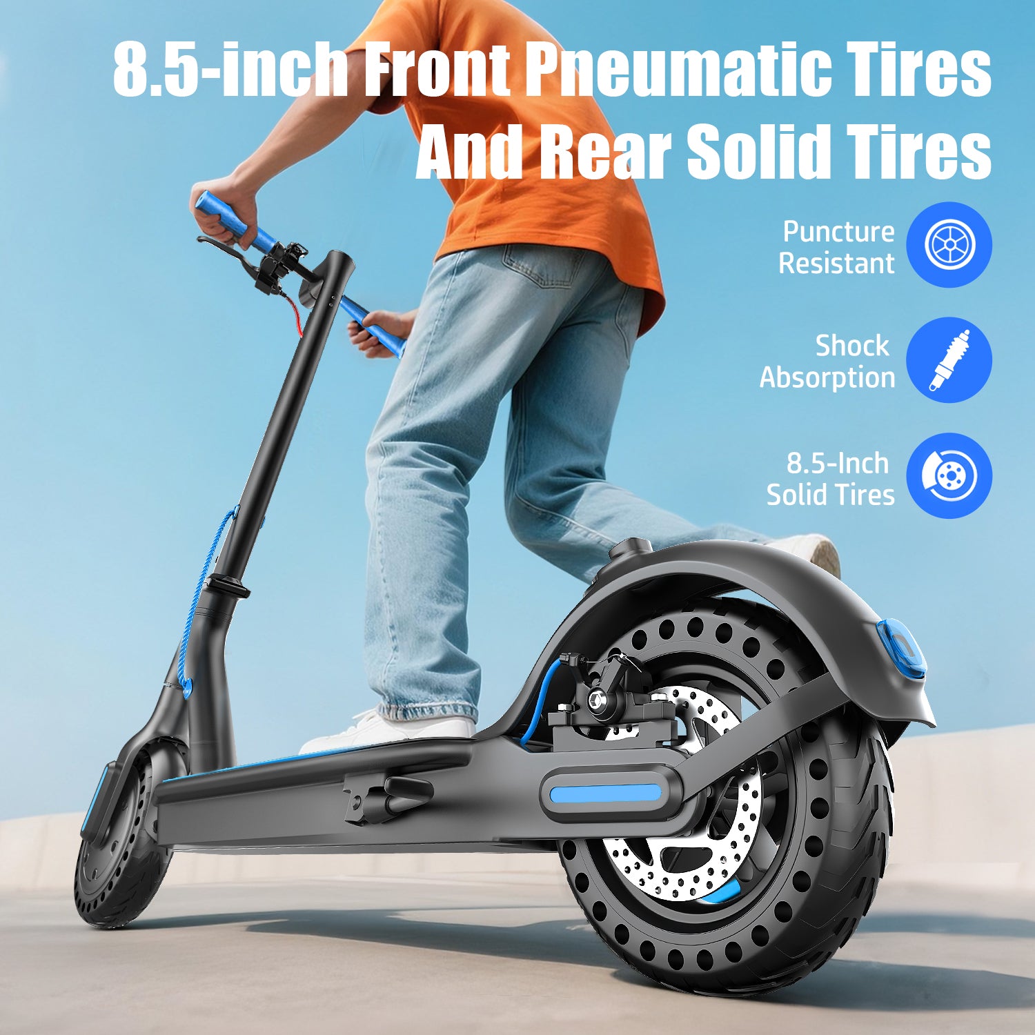 - Maintenance Free Solid Tires - ASKGO S5 electric scooter for adults is equipped with 8.5" solid tire. Honeycomb solid tire is designed to make riding more convenient and worry-free. Solid tires do not need to be inflated, repaired, or maintained.