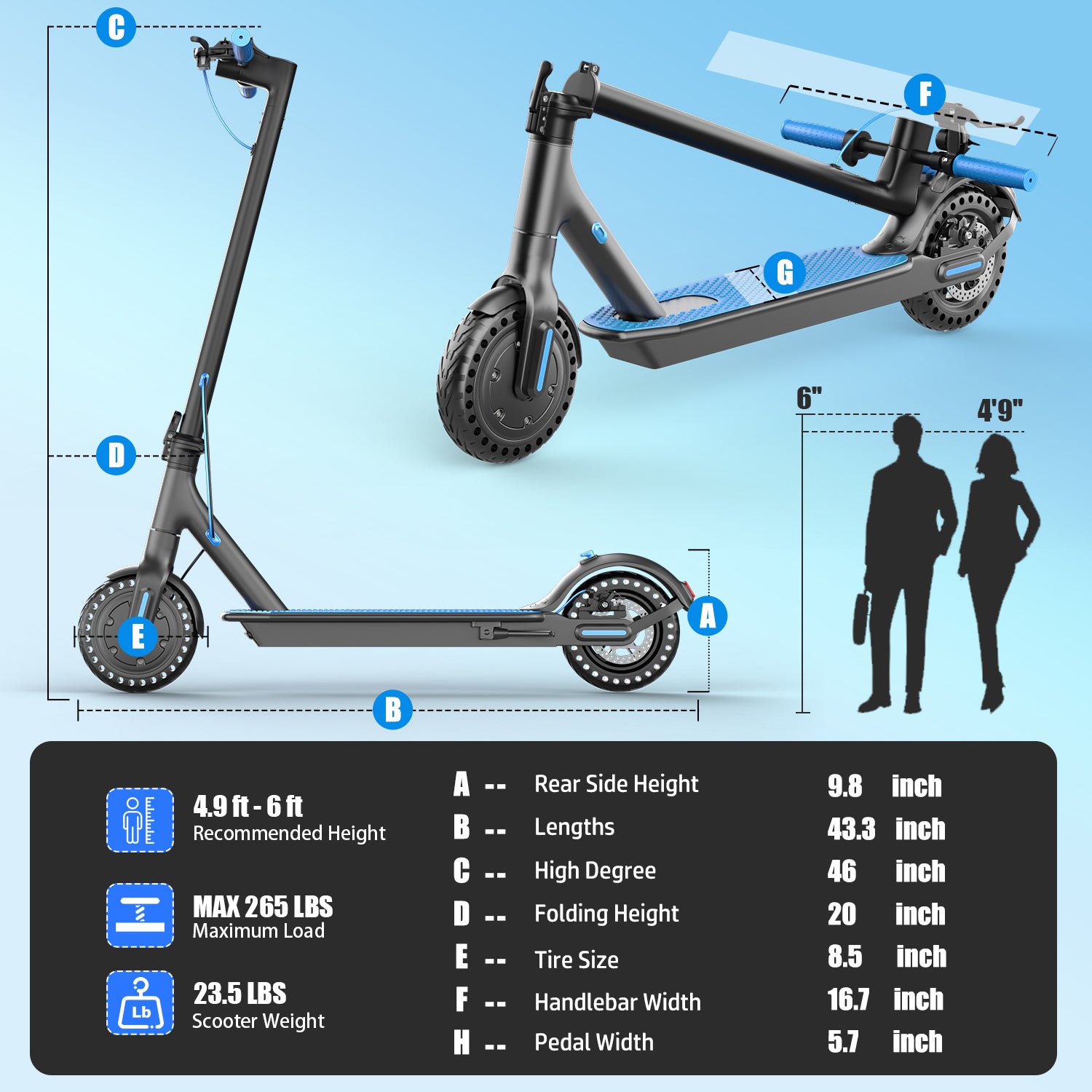 ASKGO Electric Scooter for Adults, 350W Motor, 21Miles Range, 19 Mph, 8.5" Tires, Folding Commuter E Scooter with Dual Suspension and Braking System and App,Maximum load 265 lbs