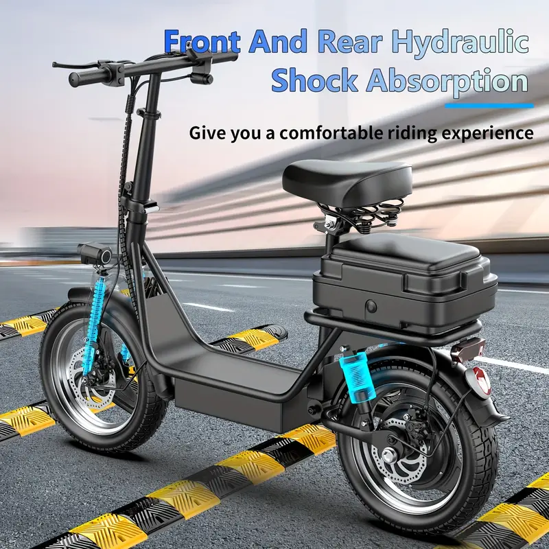 - All-Terrain Comfort - Dual shock absorbers and a detachable seat adapt to city streets or bumpy paths, reducing fatigue during extended rides.