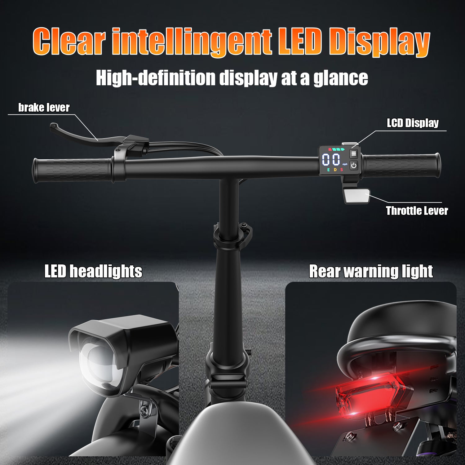 - 【Efficient Performance】- ASKGO F12 ebike uses a high-quality 500W (650 Peak) brushless motor with a max speed of 25mph and can easily conquer a 25% slope. Using the latest technology to provide powerful power output, you can ride this mini ebike in different conditions. Every acceleration is a different ride and enjoy the fun of riding.