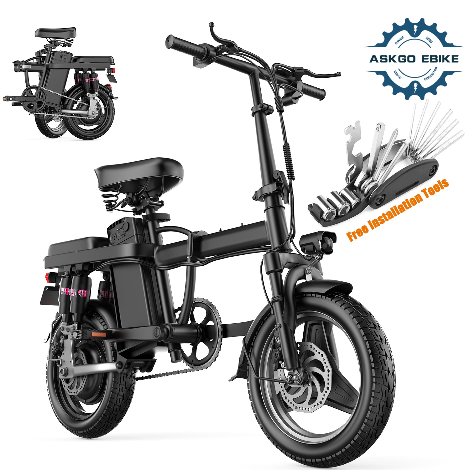 【Powerful Riding Performance】- ASKGO e-bike With a 400W(Peak 500W) brushless motor and a top speed of 25MPH, easily conquers any terrain, and the 14" lightweight foldable e-bike offers smooth riding on a variety of surfaces from city streets to off-road trails.