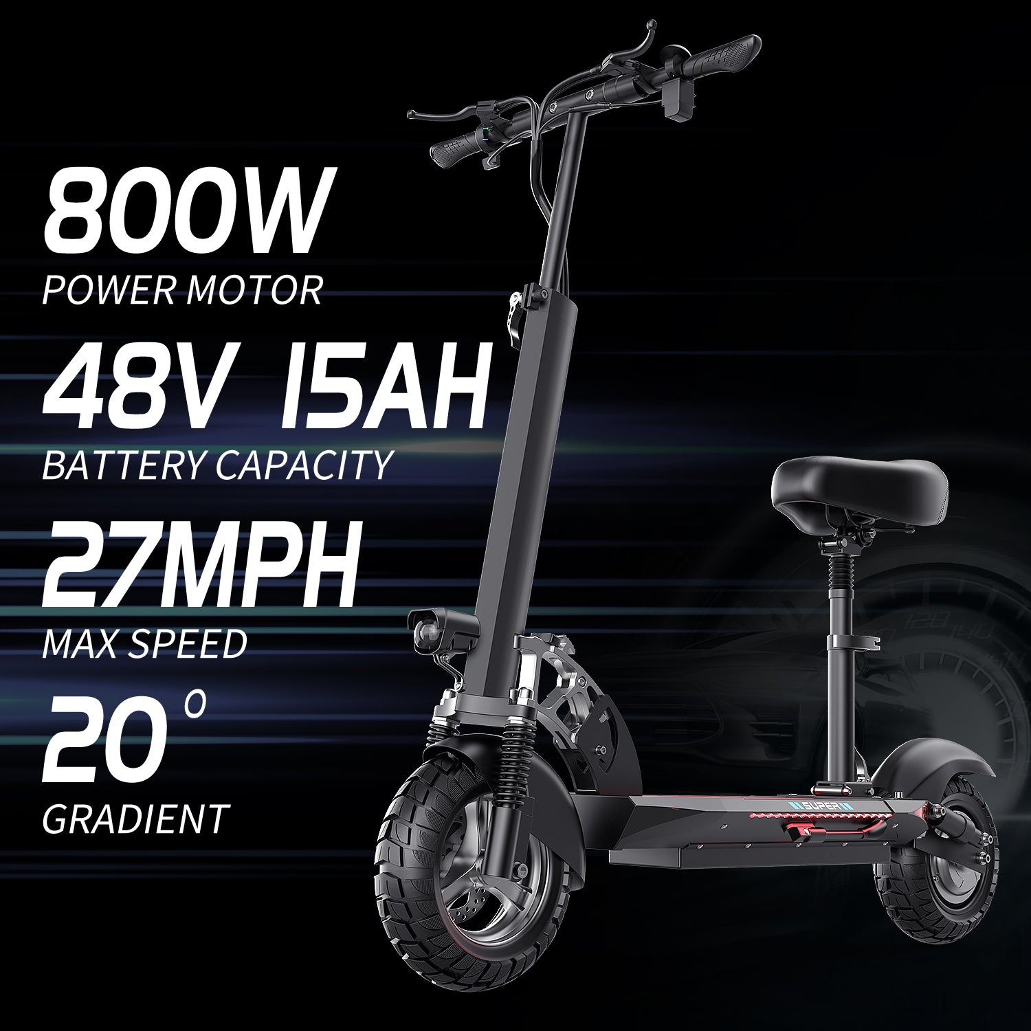 Q2 Electric Scooter Adults, 800W Motor, 27mph 35Miles Range E Scooter for Adults,10" Off-Road Tire, 48V 15AH Electric Scooter with Seat for Commuting, City Riding