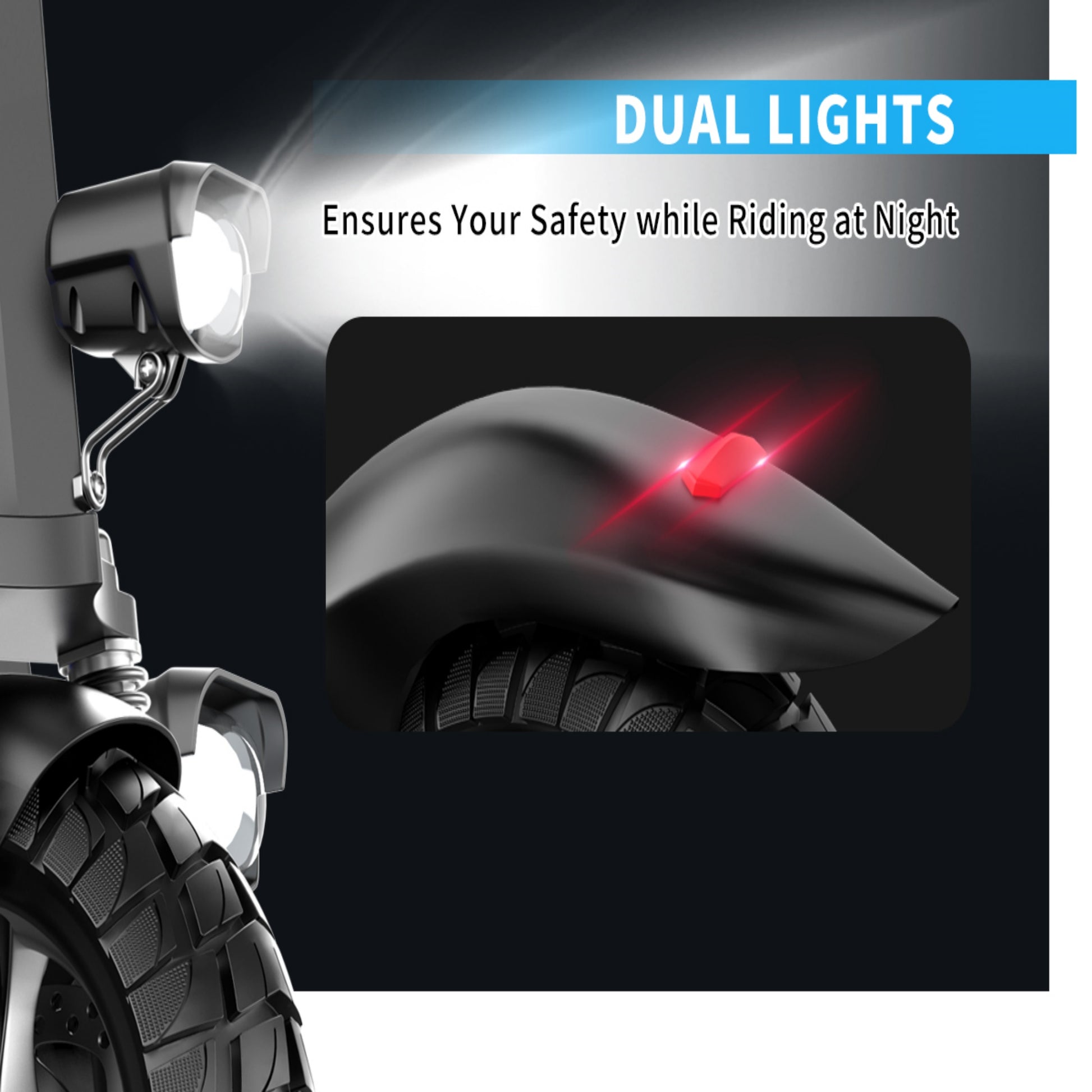 - 【We Take Safety Seriously】- Electric scooter with seat are equipped with headlights and safety warning taillights with long illumination distance to enhance nighttime safety. The Q2 e scooter comes with 10" tires and a dual shock-absorbing system, providing an extremely smooth and safe ride.